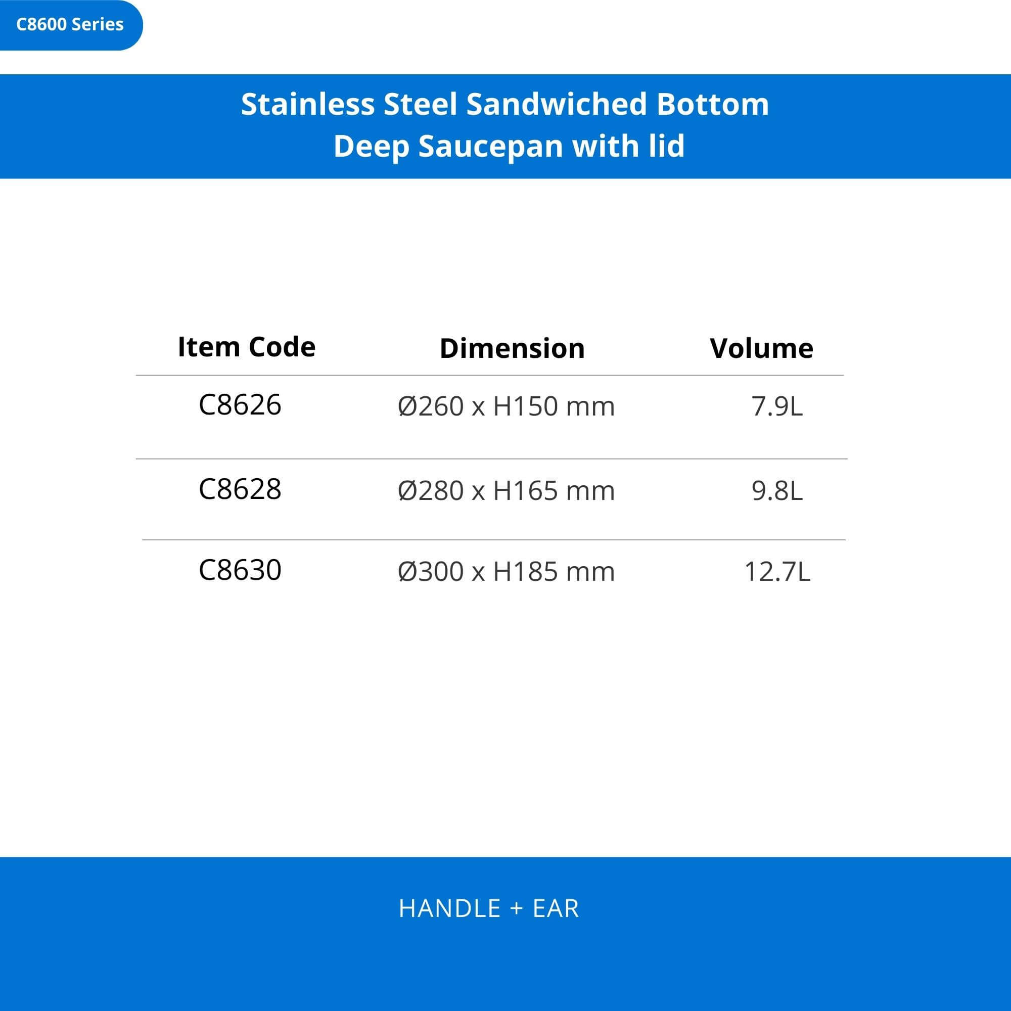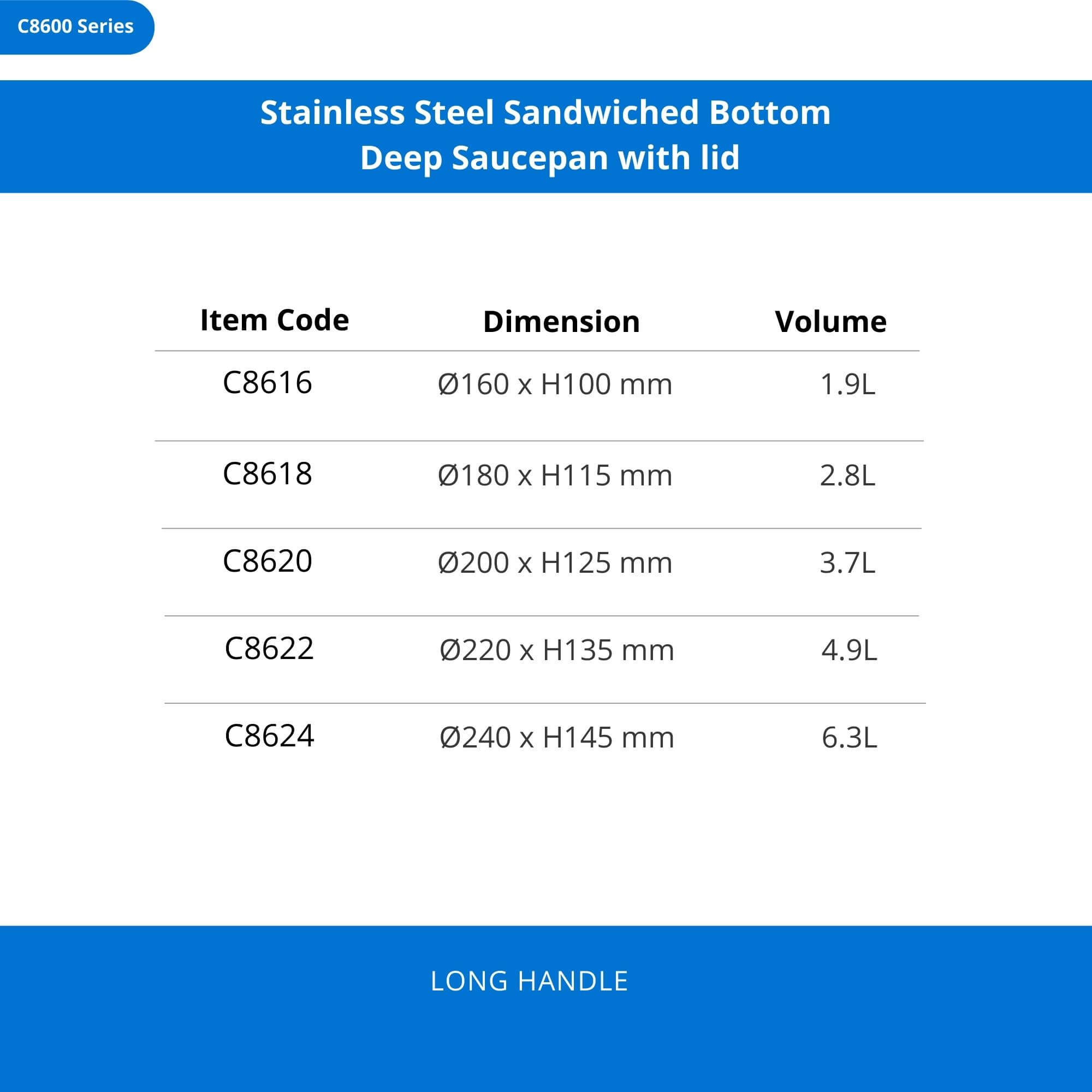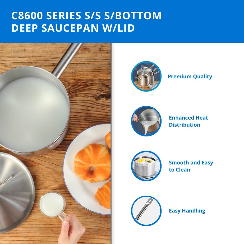 Stainless Steel Sandwiched Bottom Deep Saucepan with lid